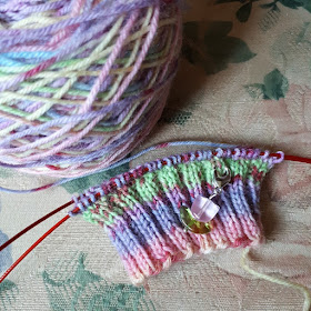 Vanmorgen vroeg ook al begonnen met een nieuwe sok (ik stond om 5.45 uur op). Ik brei hem samen met mijn internet vriendinnetje Else, want zij kocht dezelfde kleur (Opal Regenwald 18, nummer 11202) toen ze naar de opening van Tante Tuttebol kwam. We spraken toen af dat we het samen zouden breien als we een patroon gevonden hadden. Het gaan de Just add Magic sokken worden.